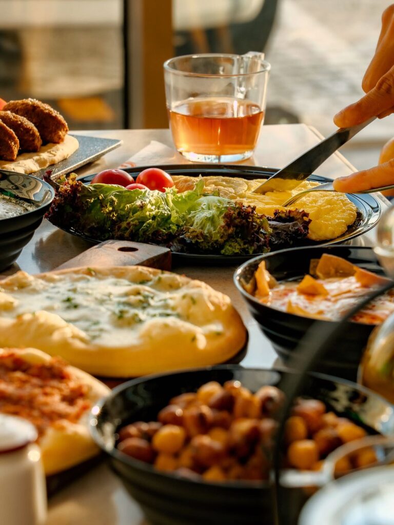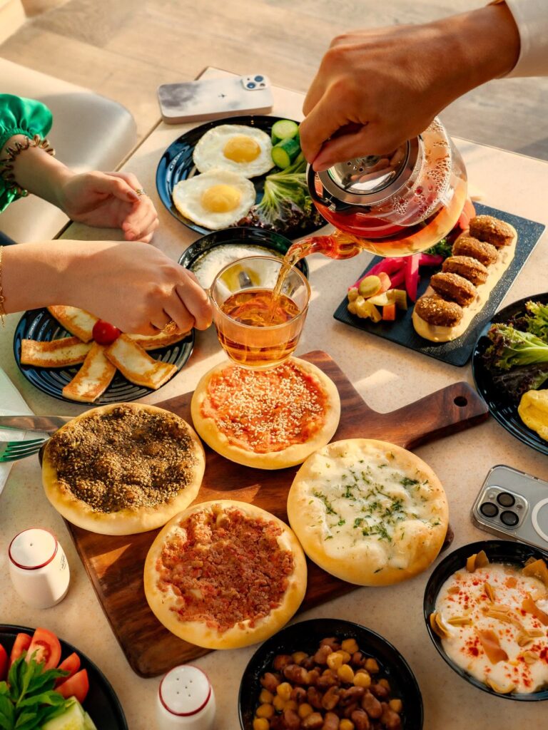 A mix of fresh yogurt with chickpeas and crispy bread with a drizzle of fresh melted butter.